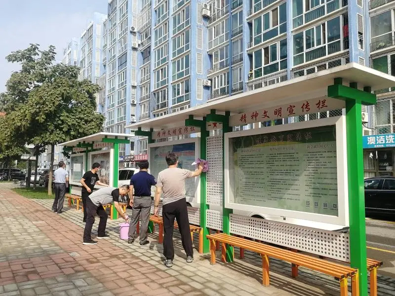 在香水园街道尚书苑小区,社区工作人员干劲十足,积极投身到大扫除活动中。他们有的手拿抹布,认真擦拭公共座椅和宣传栏,力求将每个缝隙清洁干净,有的手拿卫生夹,将藏身于砖缝间的纸屑、烟头小心取出,齐心协力打造整洁的生活环境。