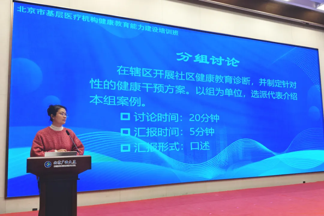 为达到培训实效,北京市疾控中心健康教育所预先组织全市332家社区卫生服务中心(站)开展健康教育能力现状及需求评估,有针对性制定此次培训课程,并在培训形式中采用“提前预习、集中授课、分组研讨、现场演练、专家点评”的组合方式加强学员们的互动参与,突出学习效果。