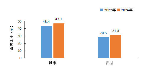 2024年监测结果显示,城乡居民健康素养水平差距明显,农村地区的健康素养水平比城市地区低15.8个百分点,与2022年相比,农村地区增幅小于城市地区。