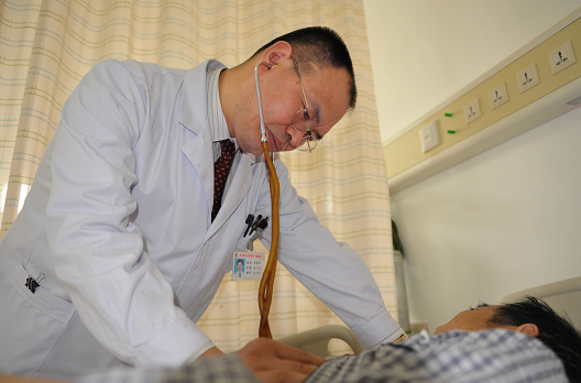 周福德认真为患者听诊