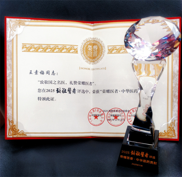 近日,首都国医名师、国家中医药管理局中医儿科学重点学科、重点专科学术带头人、北京中医药大学东方医院儿科王素梅教授凭借其在中医儿科领域的深厚造诣与突出贡献,荣获由人民日报社属环球时报社、健康时报社、生命时报社联合主办的“2025致敬医者评选活动”中华医药贡献奖。