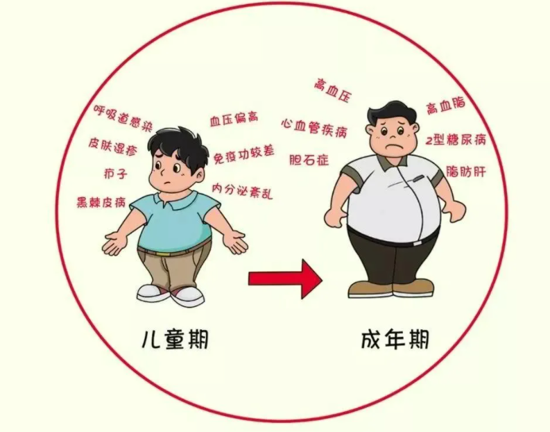 许多家长并不在意小时候的超重肥胖,认为长大就好了,但80%的肥胖儿童长大后依旧会肥胖,绝大多数“少年肥”会延续到“成年肥”,甚至是“终生肥”。如果孩子已经肥胖,切勿盲目减肥,要合理饮食,保证营养摄入均衡,充分运动,养成良好的生活习惯,同时保持愉悦的心情,健康地成长。