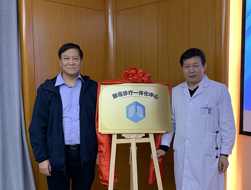 院长纪智礼在讲话中对肺癌诊疗一体化中心的成立表示肯定,对张毅教授的到来表示欢迎,并共同为一体化中心揭牌。