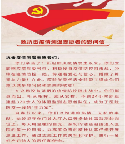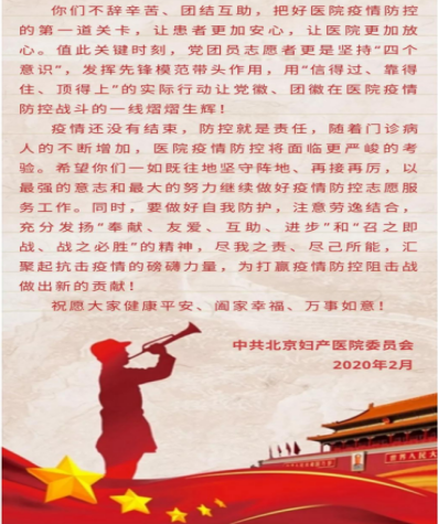 北京妇产医院致抗击疫情测温志愿者的慰问信