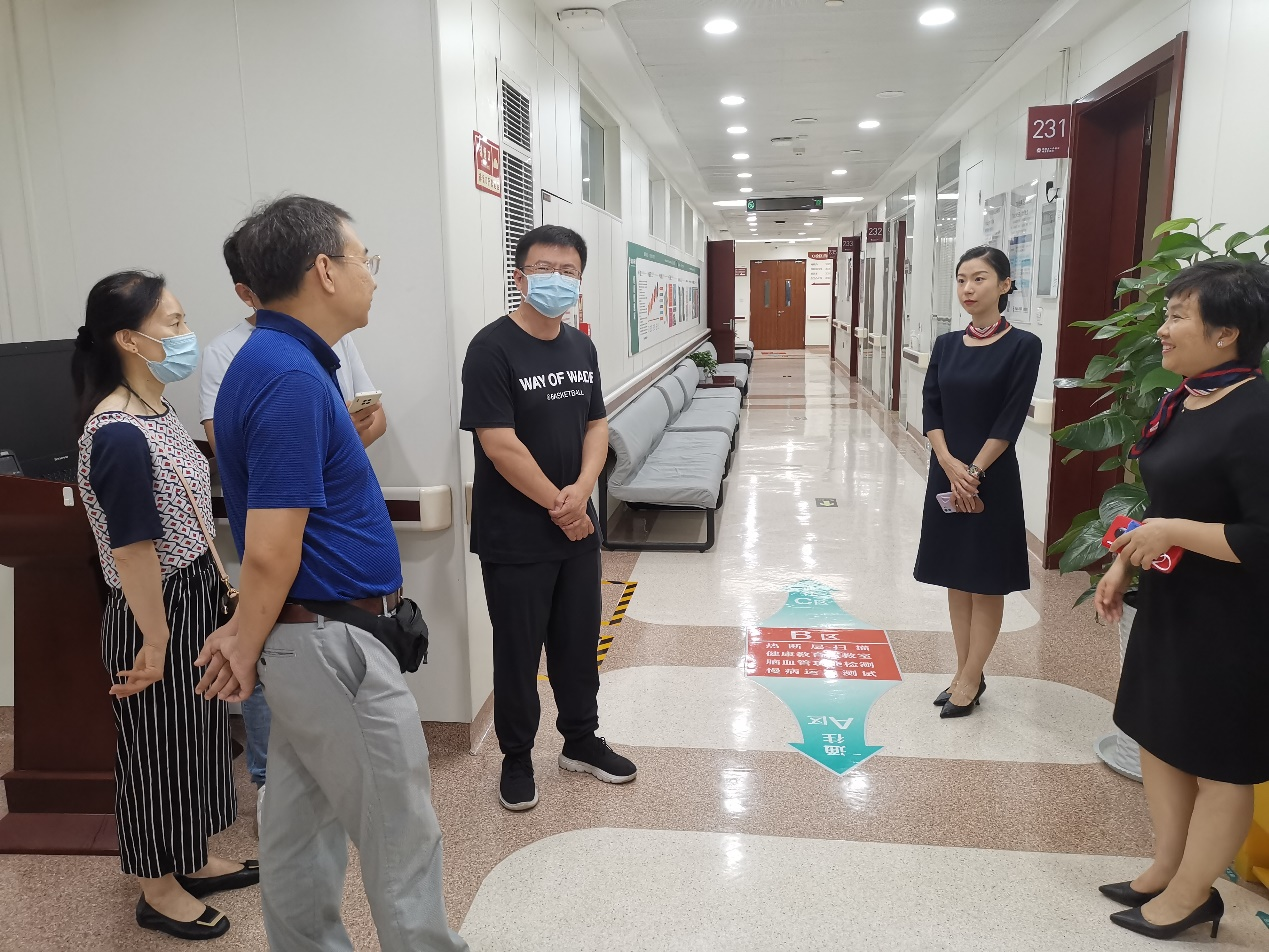 7月17日下午,北京市体检中心专项业务科科长窦紫岩、科教信息科科长陈硕、检验科科长魏红、医务科副科长杨宁、办公室副主任李强等一行到河南省人民医院健康管理中心参观交流,河南省人民医院健康管理中心护士长赵小娟陪同参观。
