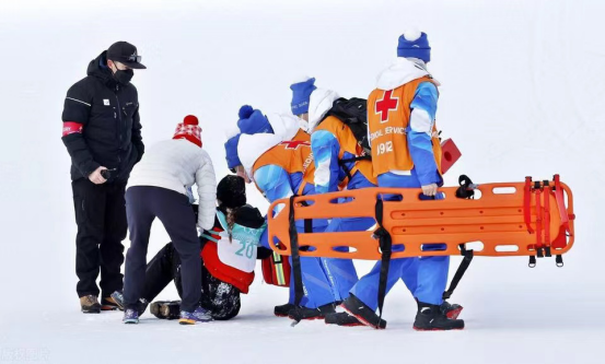 “Ritchie亲自模拟受伤运动员,提出两个问题:起跳平面距离地面12米高,运动员如果在此处坠落,伤情会非常严重,怎么才能用最快速度把伤员平稳地运送到落地区进行救援;运动员坠落在倾斜角度近40°的坡道上,因疼痛焦躁而卷曲身体,如何安全固定运动员,防止运动员和救援者不从坡道滑落?”康帅说,这“当头一棒”让保障团队再次警醒。