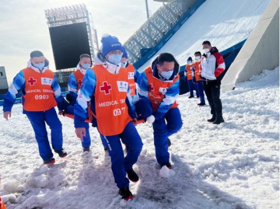 2月3日首个冬奥会训练日开始,这样的场面在首钢滑雪大跳台经常出现,由神经外科主任医师初君盛和国际医疗部护士长杨志凤带领16位医护骨干和4名高校志愿者组成的FOP医疗站和赛道医疗点团队承担着比赛场地救援和医疗保障的最前沿任务;而此时,观众医疗保障工作也已经启动。