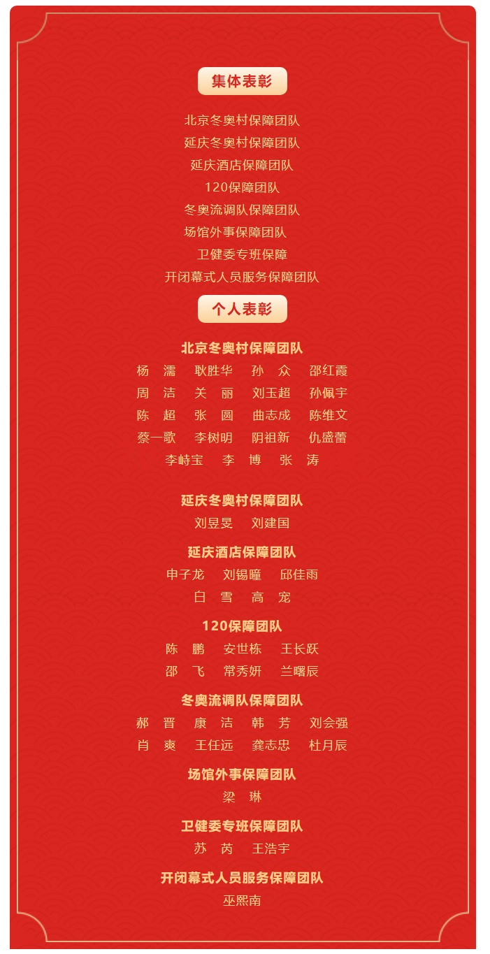刘东国副院长宣读医院对冬奥会和冬残奥会保障团队和队员表彰决定。