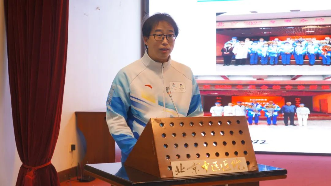 刘玉超同志作为保障队员代表发言,对北京冬奥村保障团队的组建、培训、工作情况进行回顾,并对全体院领导和各科室对于冬奥保障团队的支持和关爱表示感谢。