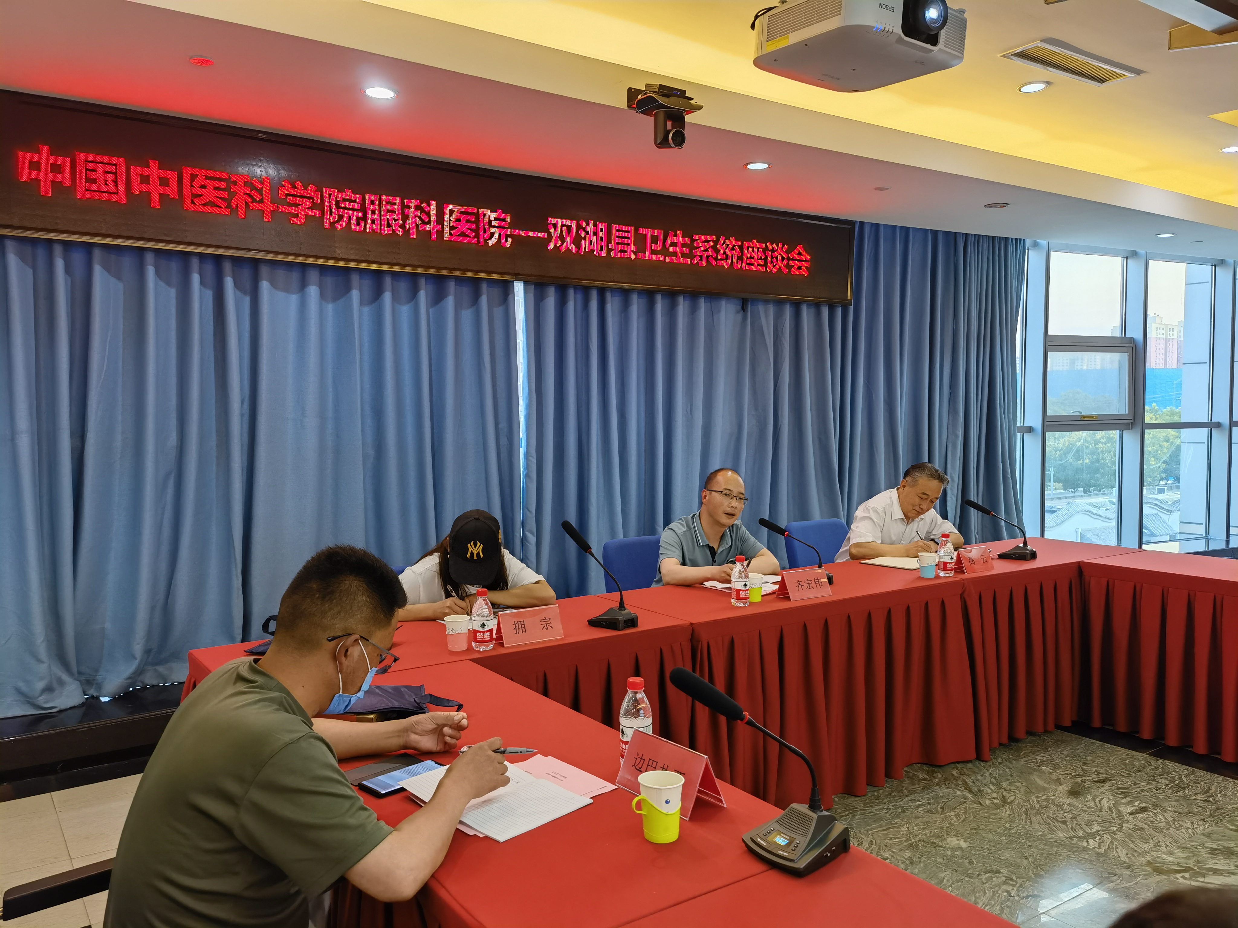2022年7月21日下午,召开“中国中医科学院中国中医科学院眼科医院-双湖县卫生系统座谈会”。会议由中国中医科学院中国中医科学院眼科医院院长温艳东主持,中国中医科学院眼科医院党委书记高云、副院长谢立科、医务处长张守康及双湖县卫生系统考察团等参会。