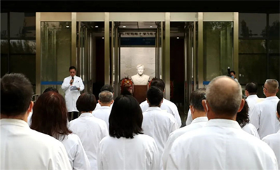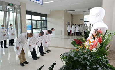 初秋的北京,凉爽宜人。9月30日一早,北京天坛医院、北京市神经外科研究所领导,神经外科学中心、神经病学中心、研究所、综合学科、职能科室等部门代表,在以王院士名字命名的“忠诚楼”前集合,向王忠诚院士塑像敬献鲜花。