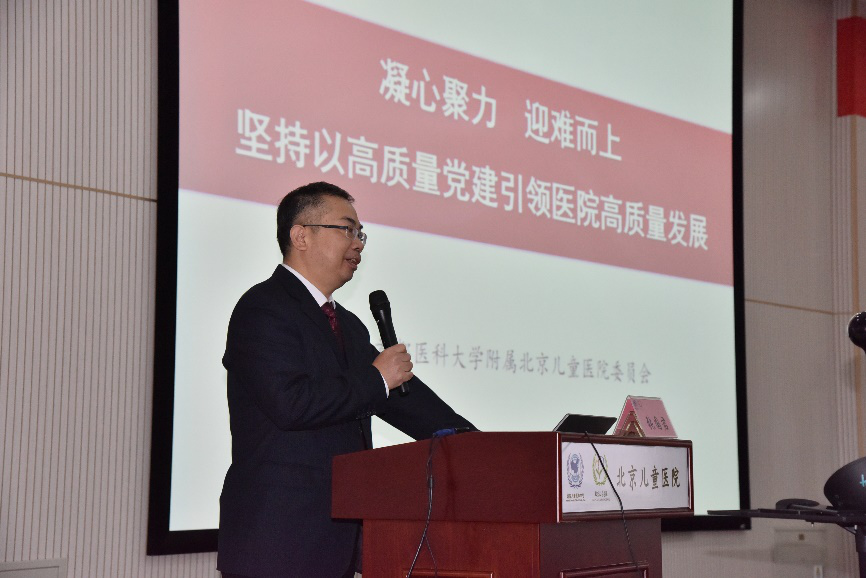 院党委副书记、院长倪鑫作题为《奋进新时代 阔步新征程——2023年度工作安排》的报告,就全面贯彻党的二十大精神、推动公立医院高质量发展、加快重大项目和国家儿童医学中心建设、推进医疗服务能力提升、加强科研创新与人才队伍建设、打造特色鲜明的医院文化等2023年重点工作进行了部署;并对全体中层干部提出了具体工作要求。