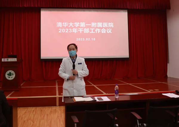 党委书记类延旭在讲话中强调,2023年是医院加速发展的一年。要着力聚焦医疗服务,提质增效,抓住机遇,深挖潜力,提升动力。全体干部要进一步增强责任感、紧迫感、使命感,要提高政治站位,准确把握形势,统一思想,不断在工作实践中增强大局意识,打造过硬的素质;要开拓创新,积极进取,奋发有为。积极对标一流医院,找差距,补短板,明方向,做到精准发力,笃行实干;要合理规划并充分利用资源,提高空间、设备的使用率。同时借助清华大学理工学科和基础医学多学科交叉融合优势,纵深突破,大力发展医工交叉研究项目,促进各学科向前发展。全体党员干部要守住底线,营造良好的医德医风环境,在科研诚信、医保政策、医疗安全、医院纪律等方面以身作则,发挥党员先锋模范作用。希望广大干部职工团结一心,昂扬向上,共同推动医院高质量发展。