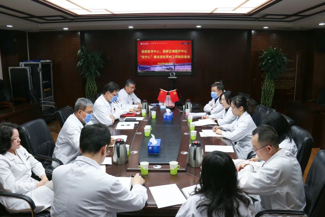 2023年4月10日,我院举行国家医学中心和区域医疗中心“双中心”建设派驻苏州工作组欢送会,组织专家团队赴苏州开展相关工作,进一步深化“双中心”建设。党委书记张允岭、院长刘震、总会计师刘辉、党委副书记李秋艳、副院长兼纪委书记徐浩以及各相关职能处室、临床科室负责人参加会议。会议由刘震主持。
