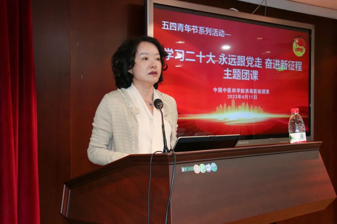 4月11日,西苑医院团委组织开展“学习二十大 永远跟党走 奋进新征程”主题团课,邀请中央团校副教授杨名讲授《学习贯彻党的二十大精神,做好新时代党的青年工作》。院党委副书记李秋艳出席会议并讲话。团委委员、团支部书记及委员、青年理论学习小组组长、党支部青年委员代表等60余人参加会议。会议由院团委书记白雪莲主持。