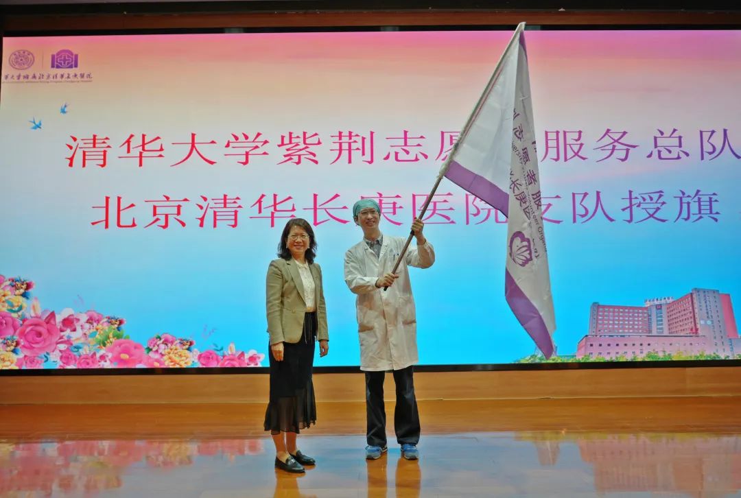 王克霞为清华大学紫荆志愿服务总队北京清华长庚医院支队授旗