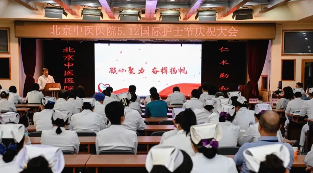 5月10日,由首都医科大学附属北京中医医院护理部和工会联合举办的凝心聚力,奋楫扬帆——5.12国际护士节庆祝大会在多功能厅举行。党委书记董杰昌,院长刘清泉,党委专职副书记温淑兰,党委副书记、纪委书记程军,副院长王大仟、刘东国,总会计师吴光清,工会主席徐春军,各党支部书记、职能处室及临床科室主任、护士代表出席庆祝大会。