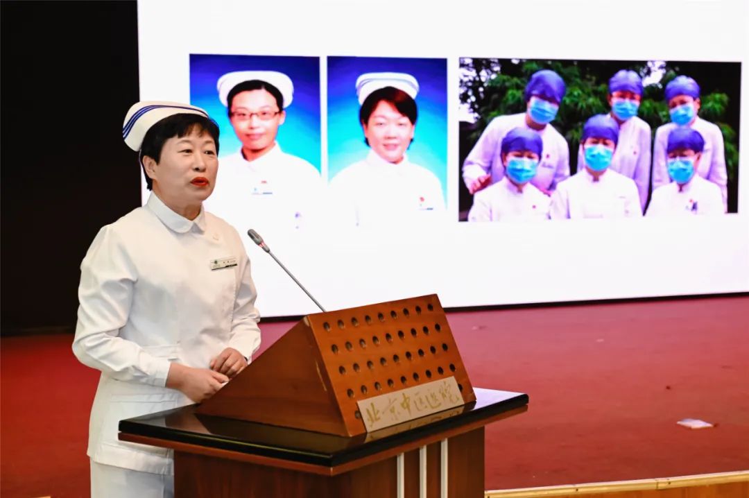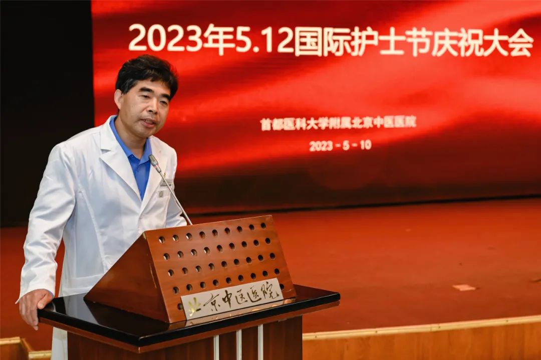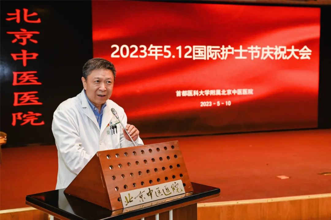董杰昌向全院护士表达美好的祝愿与崇高的敬意。他指出过去一年的护理工作艰辛但卓有成效,护理队伍的奉献精神、拼搏精神、创新精神令人钦佩。疫情就是命令,广大护士毫无怨言,守护首都的各个角落,翱翔在雪域高原。医院将综合施策多措并举,切实提升护理人员职业自豪感与获得感,保障人力资源合理分配、优化护理管理体系、提升整体护理和优质护理效果、打造特色专业护理品牌、传承创新中医药特色护理。