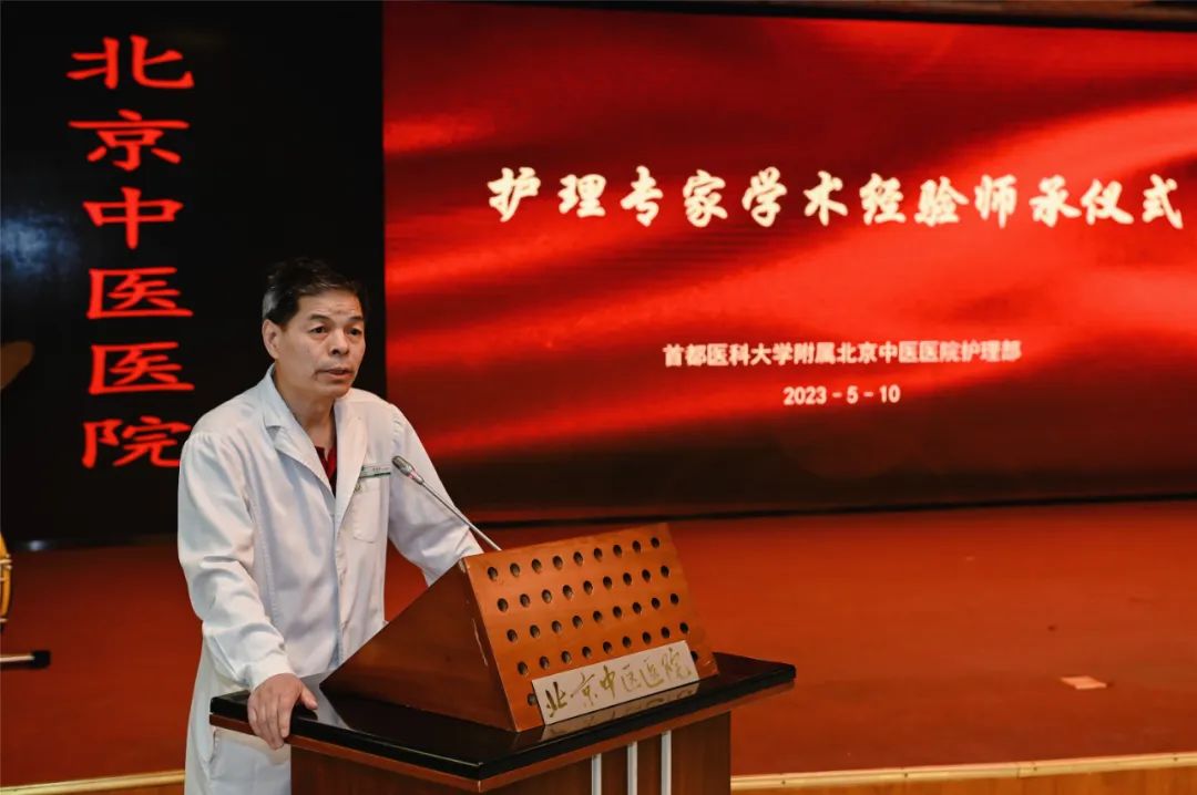 徐春军主持护理专家学术经验师承启动仪式,要求传承人努力继承导师的学术思想,切实做好护理师承工作。加强护理技术创新,保持专业特色,中西医融合全面发展。