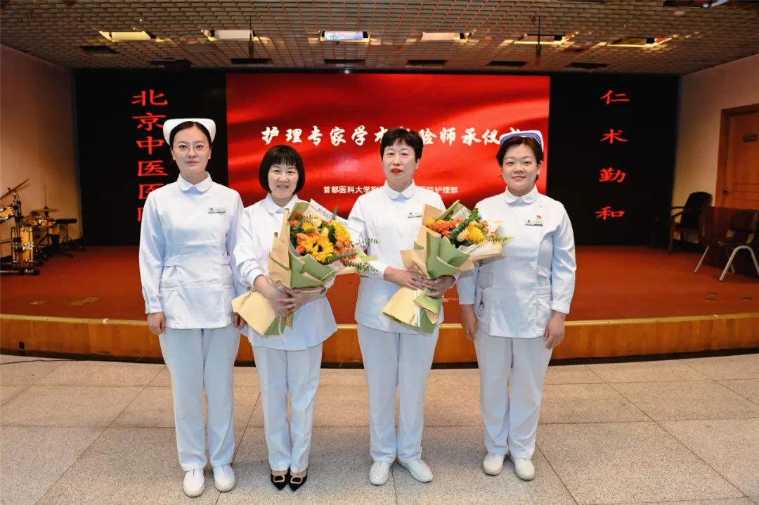 郝丽、赵国敏作为首批指导老师接受师承弟子代表献花,郝丽代表师承指导老师讲话,表示是医院给护理人员提供成长机会及展示的平台,成就了一代代护理专家,是护理前辈托举出今天的师承指导老师。人人有老师,师师有徒弟,希望导师与传承人利用好医院的传承平台,为更多的护士搭建更高的平台,提供护士展示才华能力的机会,创造出更大的发展空间。