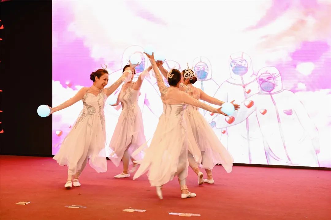 一首《最初的梦想》拉开文艺演出帷幕,“努力才走得到远方...最初的梦想紧握在手上”,歌词中道出了护理人员全心全意服务患者的初心和为中医护理事业奋斗终身的使命。肿瘤科周洁等带来的舞蹈《世界天堂》让人眼前一亮,展现了护士的柔美与刚强。普外科李韵独唱、胡欣存架子鼓伴奏的歌曲《我的未来不是梦》唱出了护理人员为梦想不懈努力的心声。孟祥辉等的诗朗诵《感恩有你》饱含深情,抒写了冲锋在抗疫一线护理战士们的勇气和奉献精神。针灸科大合唱《中国护士之歌》表达了对救死扶伤、大爱无疆的中国护士的赞美,针灸科医生团队献上横幅“宽街护士 最美天使”,把文艺演出推向高潮。
