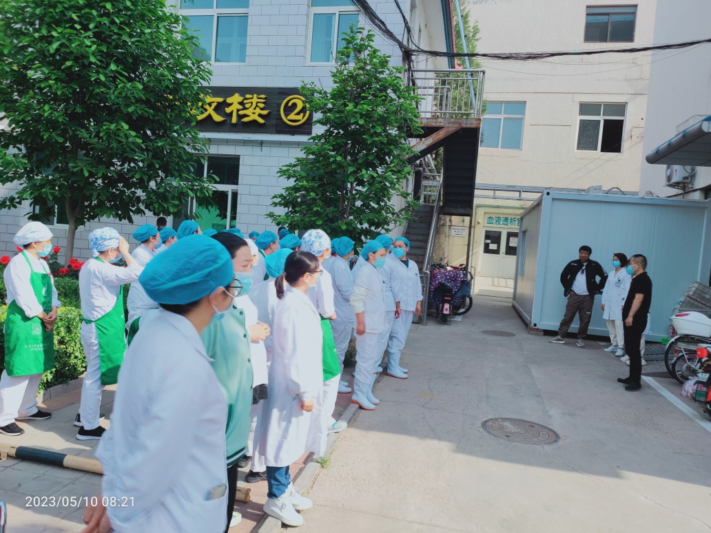 两分钟内全体人员撤离到疏散集合点,营养科董主任及安全保卫科孙科长汇报总结
