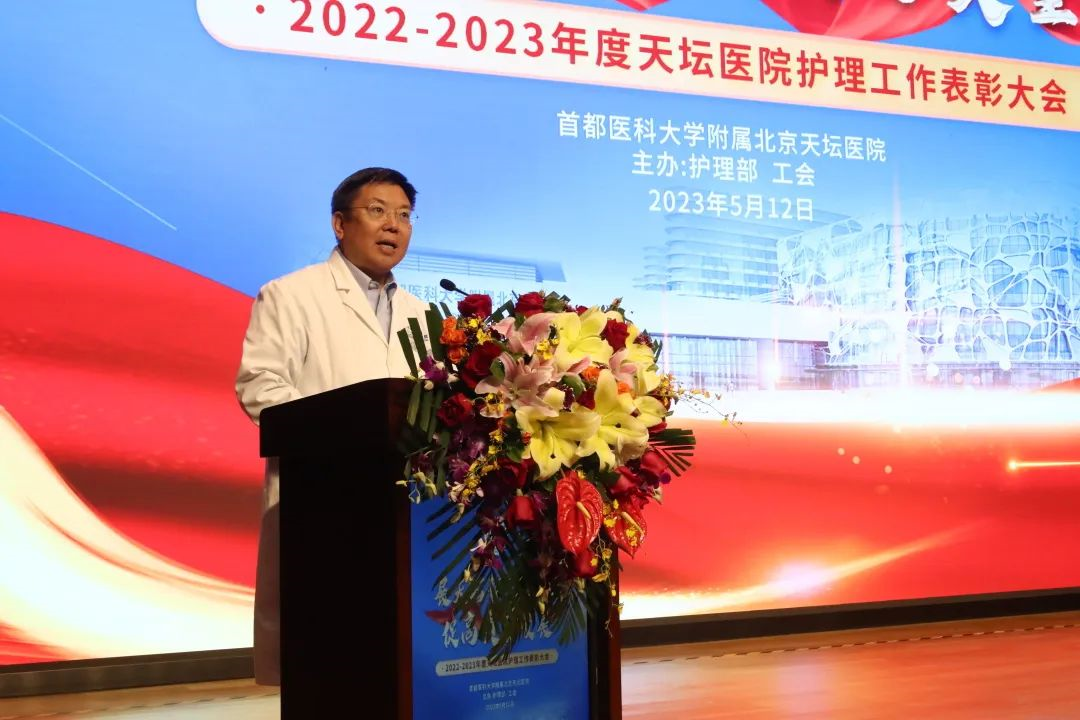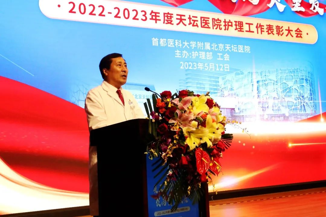 为庆祝5.12国际护士节,北京天坛医院召开以“展天坛护理文化 促高质量发展”为主题的2022-2023年度北京天坛医院护理工作表彰大会。北京天坛医院党委书记管仲军,党委副书记、院长王拥军,纪委书记任静,副院长王伊龙,工会主席徐燕玲,各职能科室主任、护士长及护士代表共300余人出席大会。