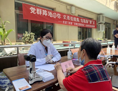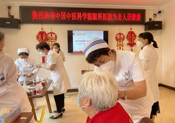 5月24日上午,为深入学习贯彻党的二十大精神,发挥中医药在健康促进中的独特作用,弘扬中华民族尊老敬老的美德,中国中医科学院眼科医院护理综合党支部与党建综合党支部联合东直门党群服务中心党委共同走进东直门养老院,组织开展以“健康中国歧黄行动-中医护理行,科普进万家”为主题的大型义诊活动。眼科医院副院长李静、纪委书记闫飞雪带队,眼科、内科、骨科、护理等医务人员25人参加此次活动。