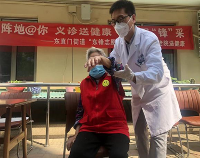针对近期疫情防控形势,为保障院里老年人的健康安全,义诊团队认真做好“京养老通”扫码登记、抗原测试、体温监测、更换N95口罩、全身消毒等,确保一切正常后再进入养老院。