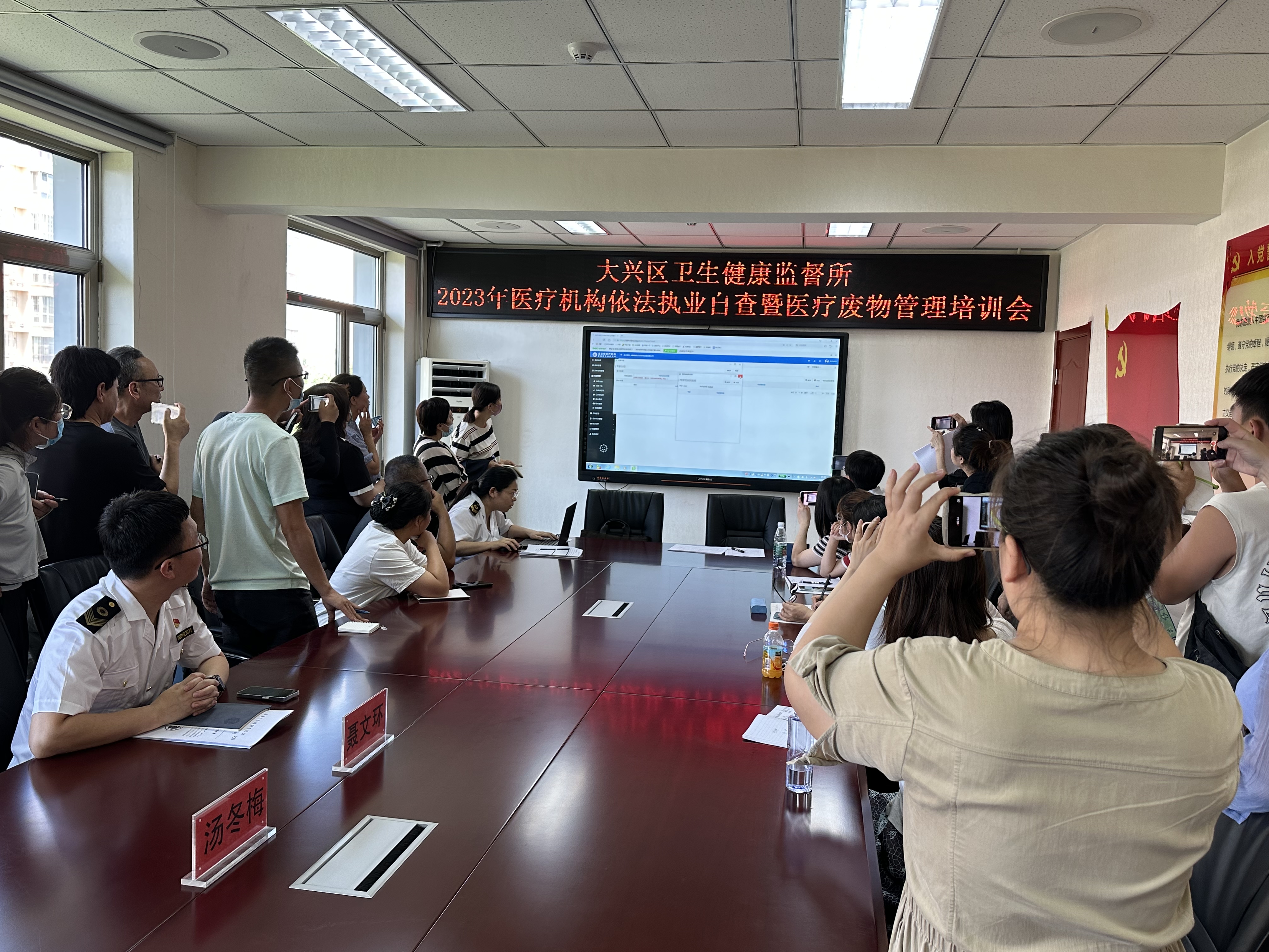 为全面推进医疗卫生行业综合监管制度,推动医疗机构落实依法执业主体责任,切实做好医疗废物处置工作,7月10日,大兴区卫生健康监督所举办2023年医疗机构依法执业自查暨医疗废物管理培训会,对辖区内20余家医疗机构的负责人进行现场培训。