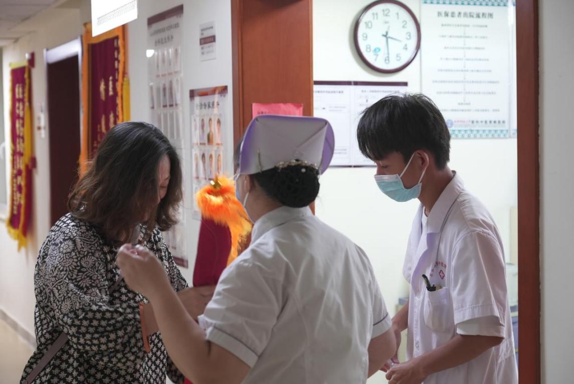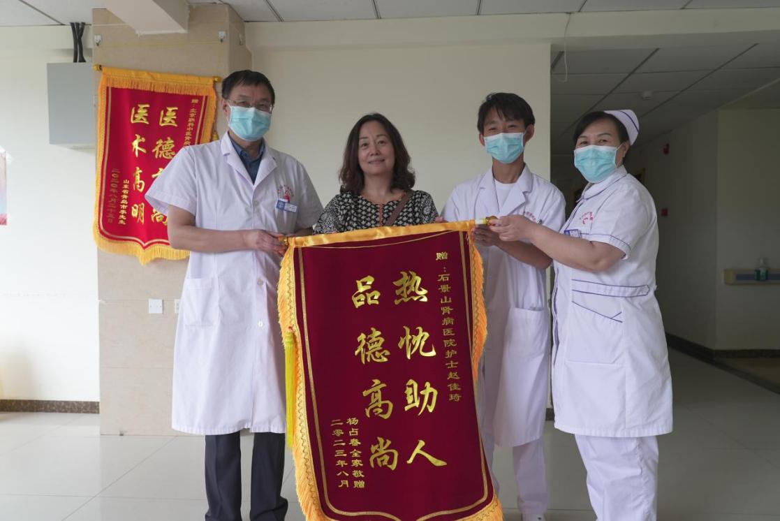 8月4日下午,家住门头沟的杨女士来到北京联科中医肾病医院,将一面印着“热忱助人 品德高尚”的锦旗交到六病区护士赵佳琪手中。