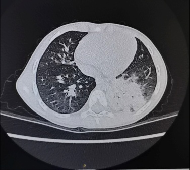 灌洗前肺CT 灌洗后肺CT 支气管镜下粘稠痰液