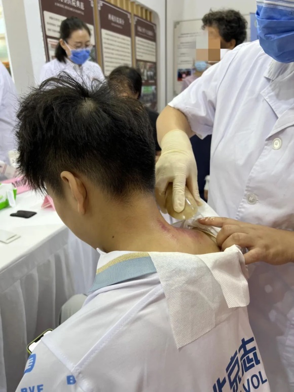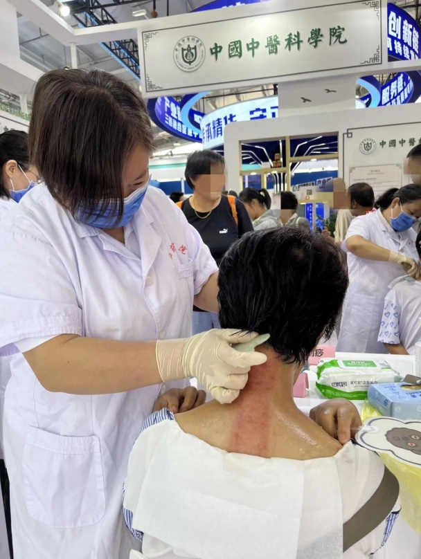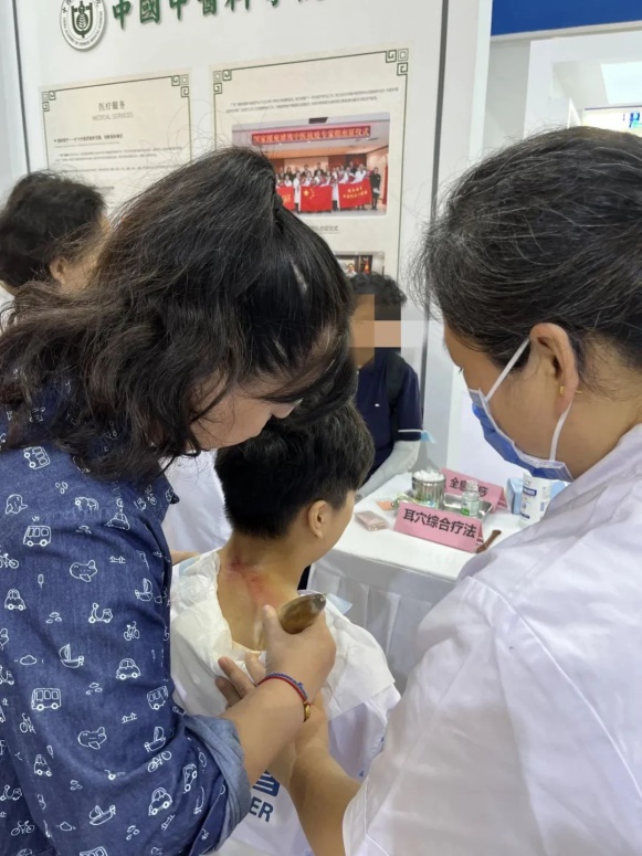 2023年9月4日,中国中医科学院西苑医院在服贸会展位上举办专场活动——中医药护理技术展示体验,将全息刮痧、耳穴埋豆等中医药特色护理技术带到了服贸会现场,引起了参展观众的极大兴趣,体验现场一度排起了长队。人民网海外版拍摄团队也来到活动现场,将通过视频讲解与展示的方式将简便验廉的中医药护理特色技术推广给海外友人。
