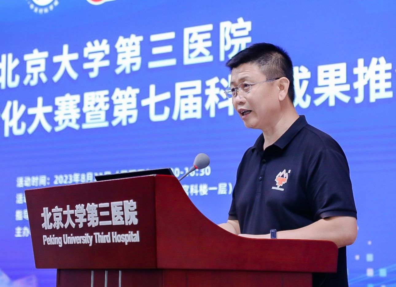 时值建院65周年即将到来之际,2023年8月31日下午,北京大学第三医院第六届创新转化大赛暨第七届科技成果推介会举行。本次活动由中关村科学城指导,北京大学第三医院和海淀区知识产权局联合主办。