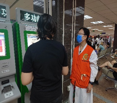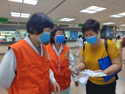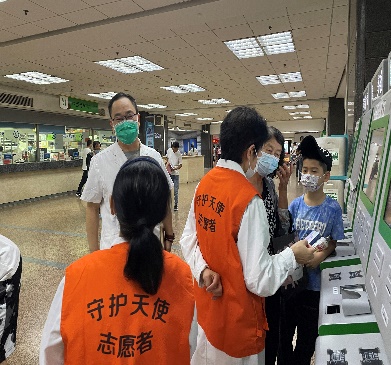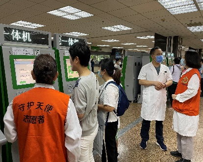 活动期间,离退休党总支书记左正中多次到门诊楼地下一层自助机旁,与志愿服务老党员了解暑期就诊高峰期间志愿服务中遇到的问题、自助机使用等情况,并对参加志愿服务老党员认真服务患儿家长的精神给予高度评价。