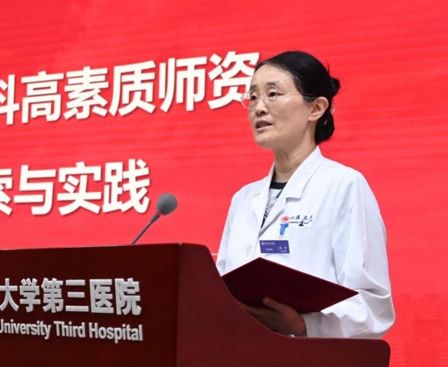医学部副主任段丽萍首先致辞,今年是北京大学第三医院建院65周年,65载春华秋实,北京大学第三医院与时代同呼吸共命运。过去的一年,北京大学第三医院在教育教学领域取得了一系列的成果。由乔杰院士牵头的教学成果“医心师道——新医科高素质师资培养体系的探索与实践”项目,荣获2022年高等教育(本科)国家级教学成果奖一等奖;妇产科学荣获国家级一流本科课程。习近平总书记指出:“一个人遇到好老师是人生的幸运,一所学校拥有好老师是学校的光荣,一个民族源源不断涌现出一批又一批好老师则是民族的希望”。段丽萍副主任希望新同学们在未来医学求索之路上,融入“团结、奉献、求实、创新”的院训精神,胸怀家国,脚踏实地,精进学业,勇攀高峰,在持续的奋斗中谱写自己的青春之歌!
