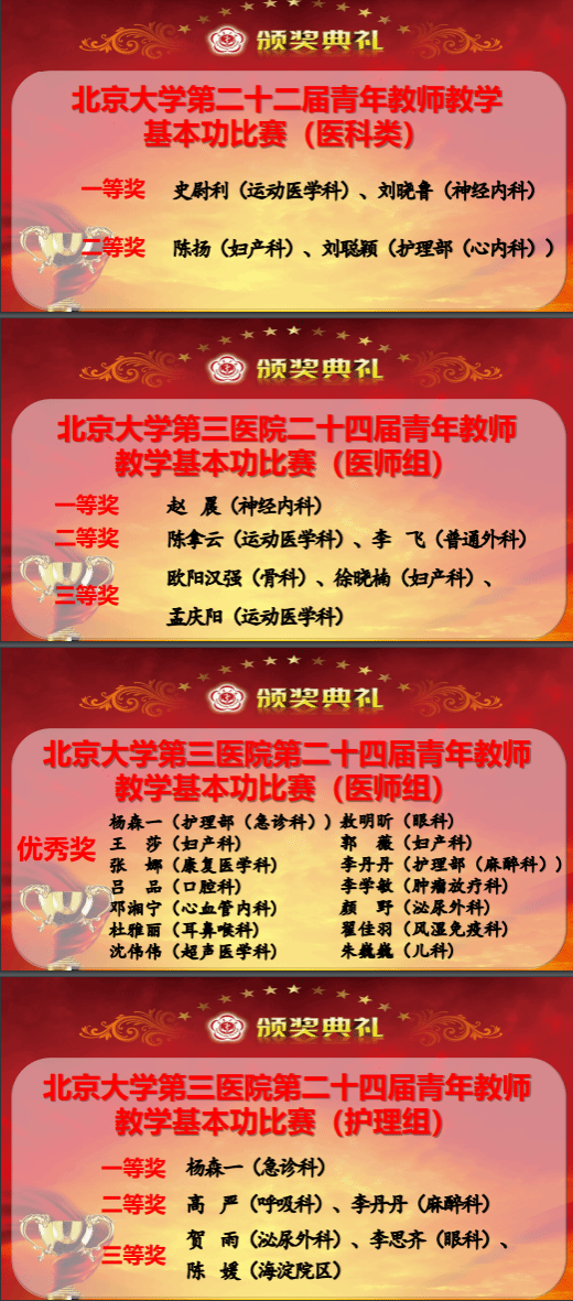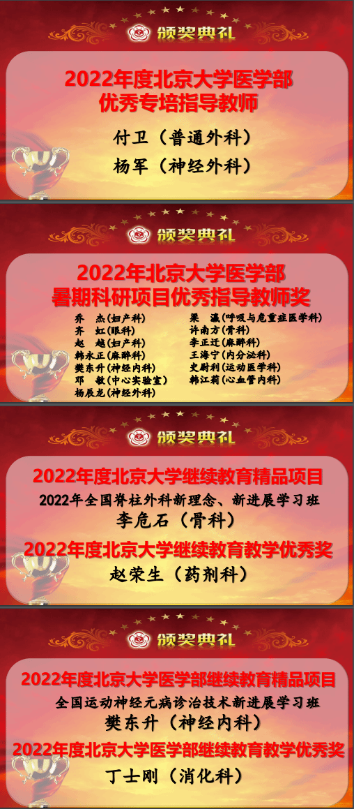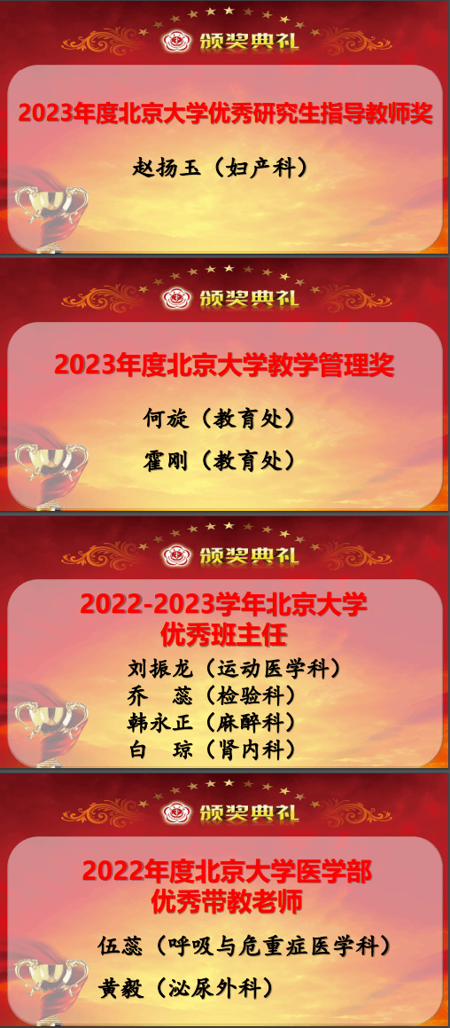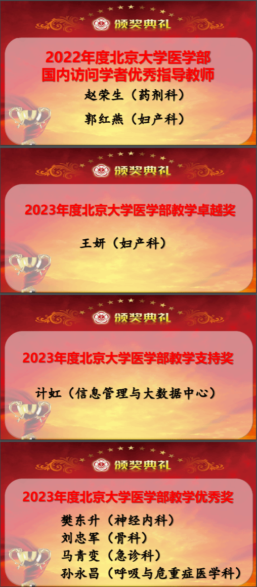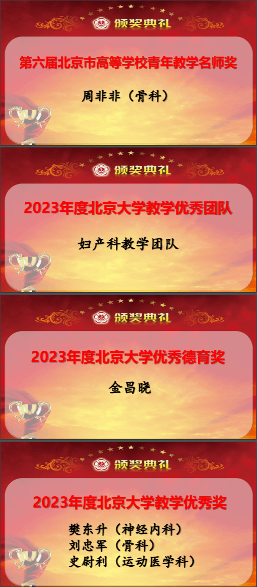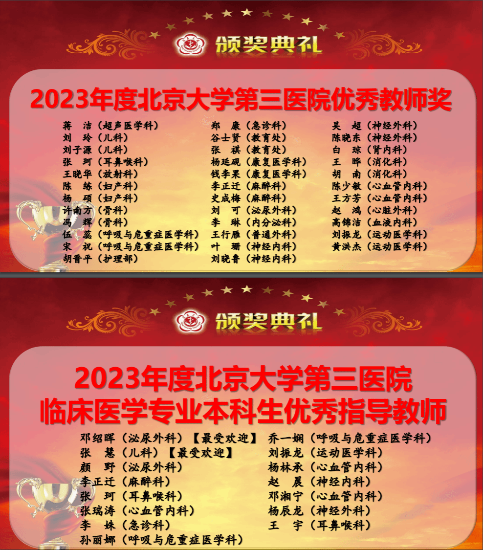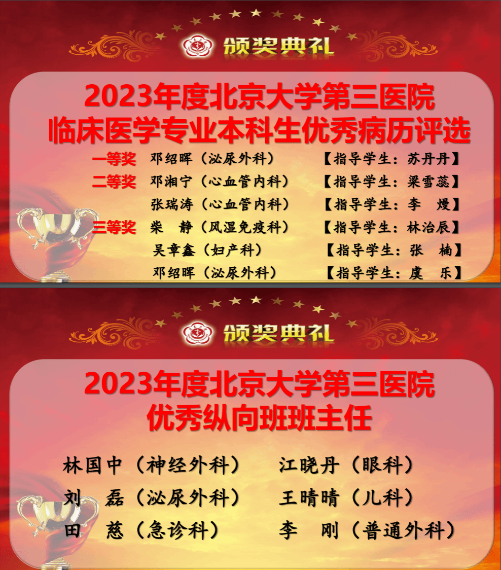 随后,刘东明副书记宣读了《北京大学第三医院关于表彰2022-2023年度教育教学工作先进集体和先进个人的决定》。与会领导为获奖集体和个人颁奖。