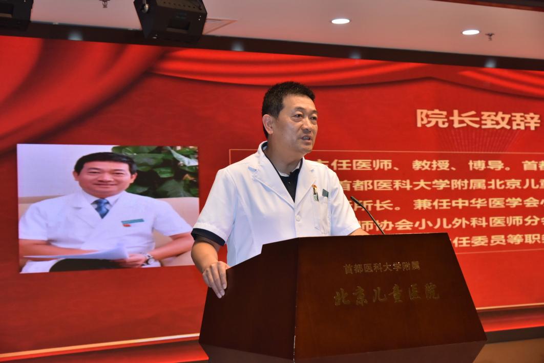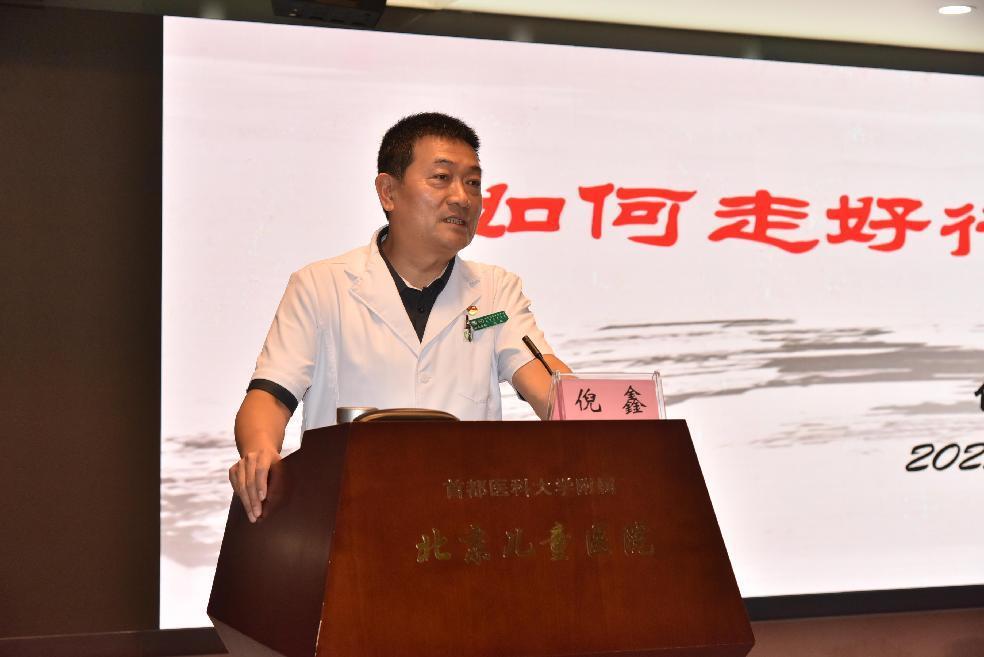倪鑫院长首先代表国家儿童医学中心、首都医科大学儿科医学院对新生的到来表示热烈欢迎。他指出,儿童的健康水平关系到千万家庭的幸福安康,儿科医生承载着国家儿童健康的未来。他用习近平总书记提出的提高年轻干部政治能力、调查研究能力、科学决策能力、改革攻坚能力、应急处突能力、群众工作能力、抓落实能力这七个能力与大家共勉,希望全体师生牢记“公慈勤和”院训,在新的起点扬帆起航,在未来的医学道路上不断超越自我,共同为国家儿童健康事业贡献自己的一份力量。