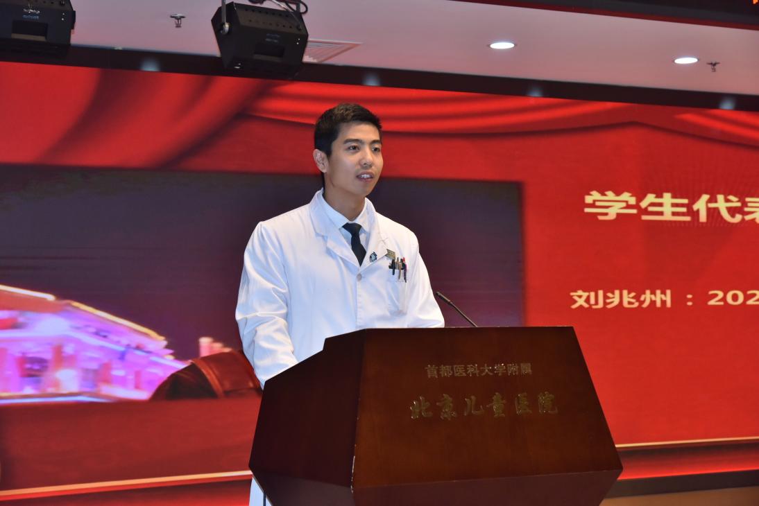 2023级博士研究生刘兆州代表新生向为儿科医学教育事业奋斗的老师表达感谢与祝福。“健康所系,性命相托,这是属于医者的使命”,刘兆州同学和大家分享了自己从医求学问道之旅的心路历程,并表示将坚持不懈、锲而不舍、追求卓越,希望新同学珍惜每一寸光阴,博采众长、勇于创新,传承前辈衣钵,在儿科医学领域留下属于新一代儿医人浓墨重彩的一笔。