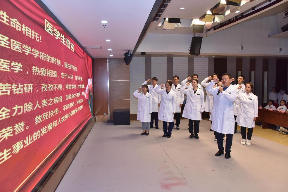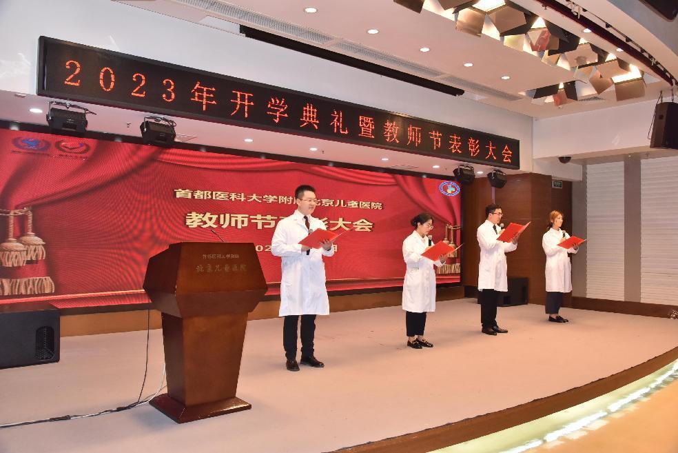 表彰环节后,2021级博士班李海艟带领大家重温医学誓言,担当“健康所系,性命相托”重任,树立为儿童健康事业奋斗的决心。儿科医学院学生代表献上祝福视频与诗朗诵节目,表达了对教师们的深情感谢、崇高敬意和真诚祝福,以及新学期开启新征程的美好祝愿。