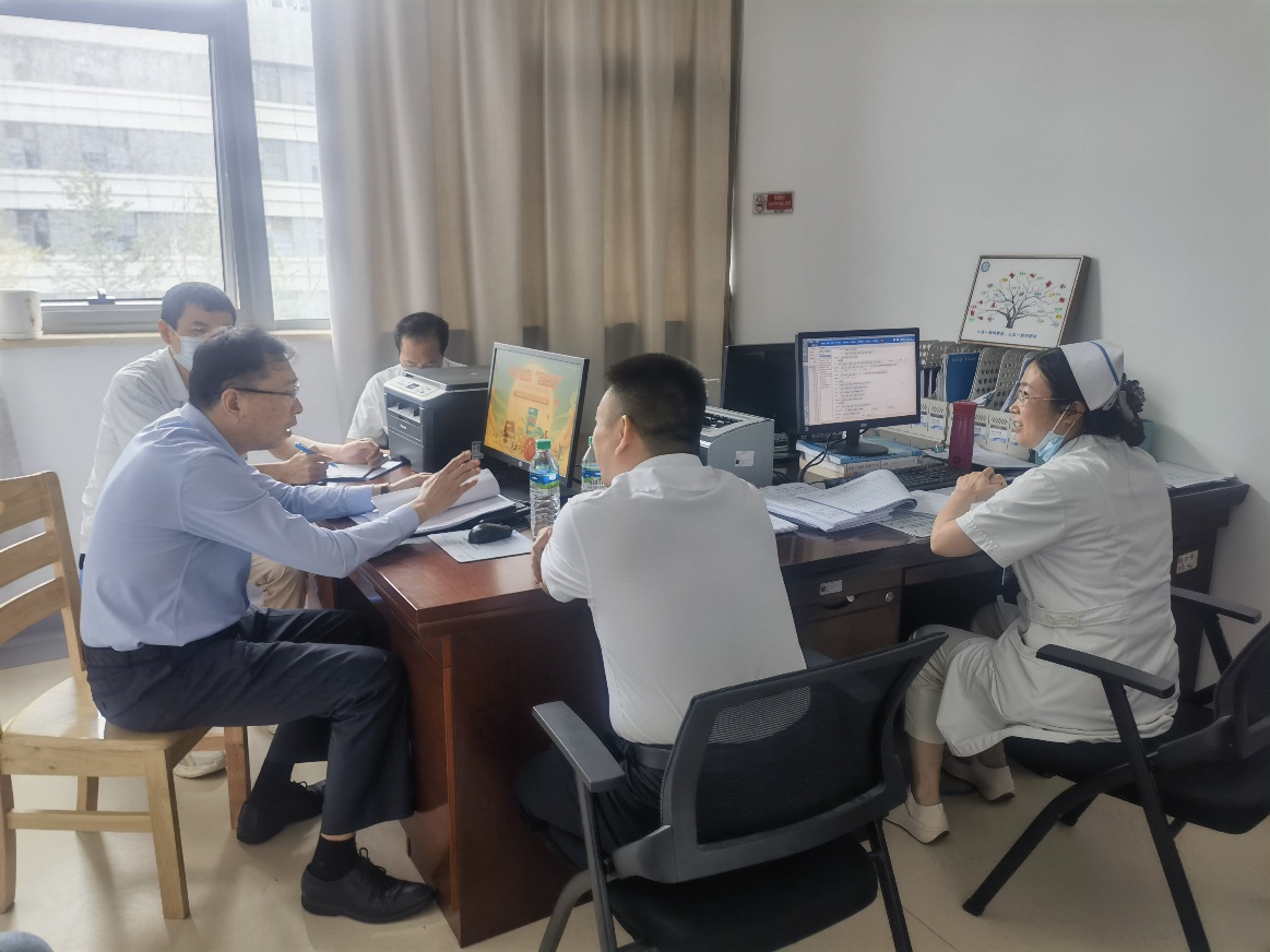 与此同时,薛冬副书记带领其他成员前往于都县人民医院与对口临床科室开展联合查房,针对查房中发现的问题与科室人员进行了深入沟通交流,并围绕医疗技术开展、规范化诊疗、药物临床试验机构的建立、科室管理等问题给予指导。