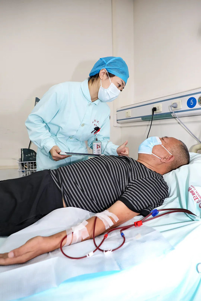 在航空总医院血液净化中心,我看到每张病床上都躺着患者,护士们的工作紧张而有序。来这里做血透的多是跟我一样,肾功能衰竭患者,透析治疗过程中每一个小小的差错都会造成不可挽回的后果。
