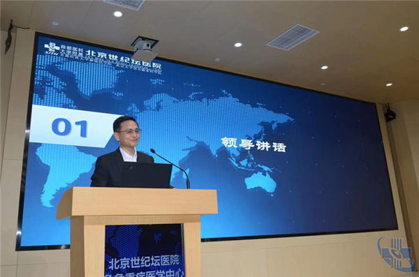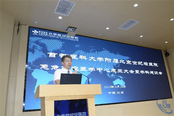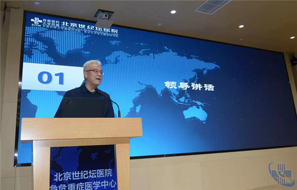 急危重症医学中心的成立离不开各级领导的指导、关心和帮助。北京市医管中心副主任王宇代表医管中心对急危重症医学中心的成立表示热烈祝贺!他在致辞中表示,急危重症医学中心的成立标志着世纪坛医院在危重病救治领域取得了新突破,在急诊急救、重症监护、多学科协作等方面迈上了一个新台阶,也标志着世纪坛医院提出的突出急诊急救新发展理念落到了实处,为医院发展注入了新动力。急危重症医学中心的建立对带动临床专科能力建设,推动医疗卫生服务体系高质量发展具有重要意义。