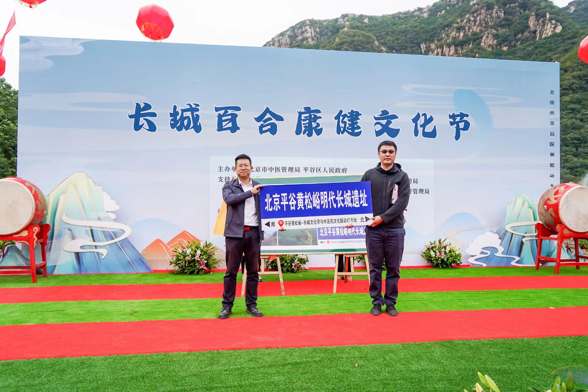 区文旅局副局长孙亮为黄松峪乡人民政府授予“平谷长城文化打卡地标识”。