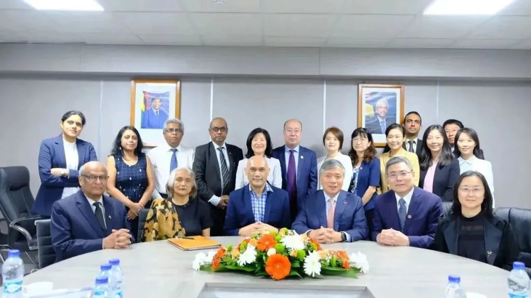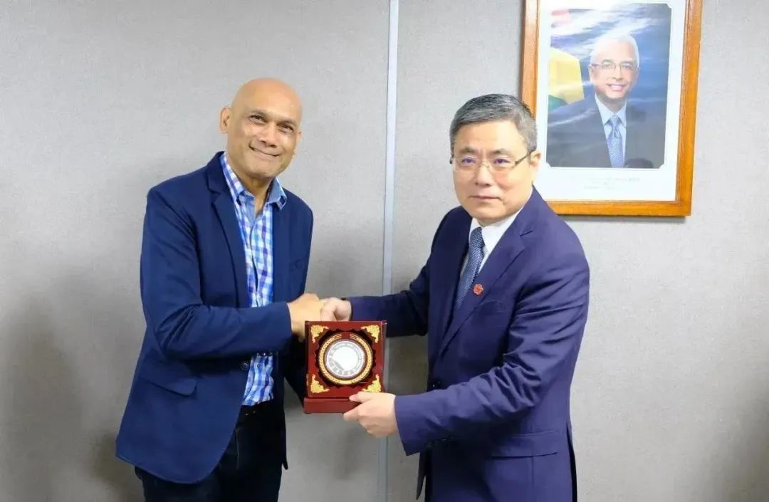 结束卫生部访问后,访问团应邀前往我国驻毛里求斯大使馆,同朱立英大使和商务参赞曲英举行工作会谈。