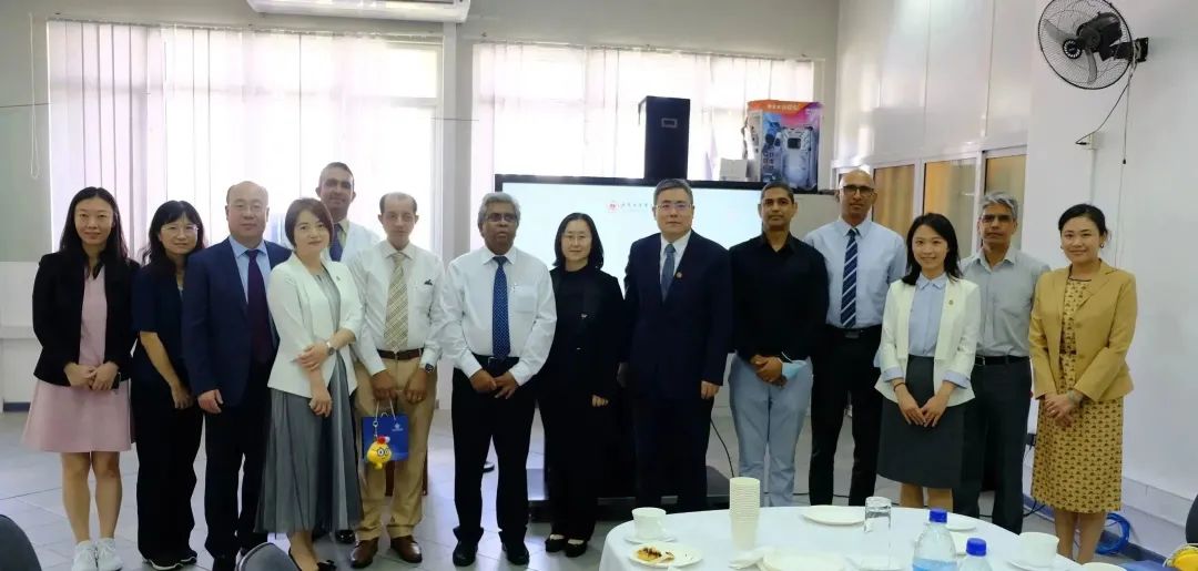北京大学医学部国合处处长孙秋丹和北医三院院长付卫分别汇报了合作项目前期筹备情况,希望积极发挥北大医学的优势,以此项目开启中非医疗领域合作,提升当地医疗水平。曲英商务参赞表示,此次北大医学访问团之行意义重大,补充了中毛在医疗领域合作的缺失项,特别是技术支持和人才培养。朱立英大使对北医三院在项目前期推进工作中做出的努力表示感谢,并指出,中国是最早同毛里求斯建交的国家之一,两国友谊源远流长。建交以来中毛关系健康稳定发展,各领域合作日益深化,合作成果丰硕。此次访问是两国友好关系的见证,大使馆愿继续助力双方合作,推动合作项目尽快落地实施,拓展两国在医疗领域的合作。