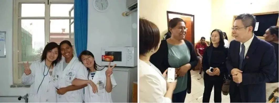 参观期间,访问团探访北京大学医学部临床医学99级毛里求斯留学生努沙德(Nushad)。她如今已成长为维多利亚医院一位优秀的普外科专家。得知我们来自母校,她非常兴奋,用流利的中文和我们聊起她在校期间的老师和同学,希望有机会再回母校看看。像努沙德这样曾在中国留学的医生,维多利亚医院有不少,参观期间偶然碰到,用流利的中文和访问团热情打招呼。