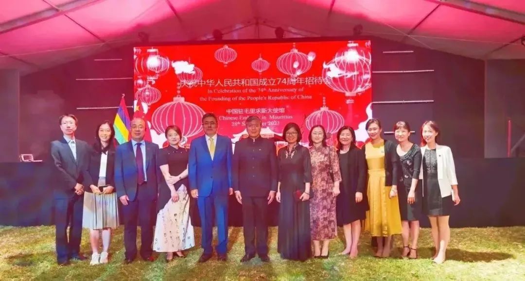 访问团出席中国驻毛里求斯大使馆举行的庆祝中华人民共和国成立74周年招待会