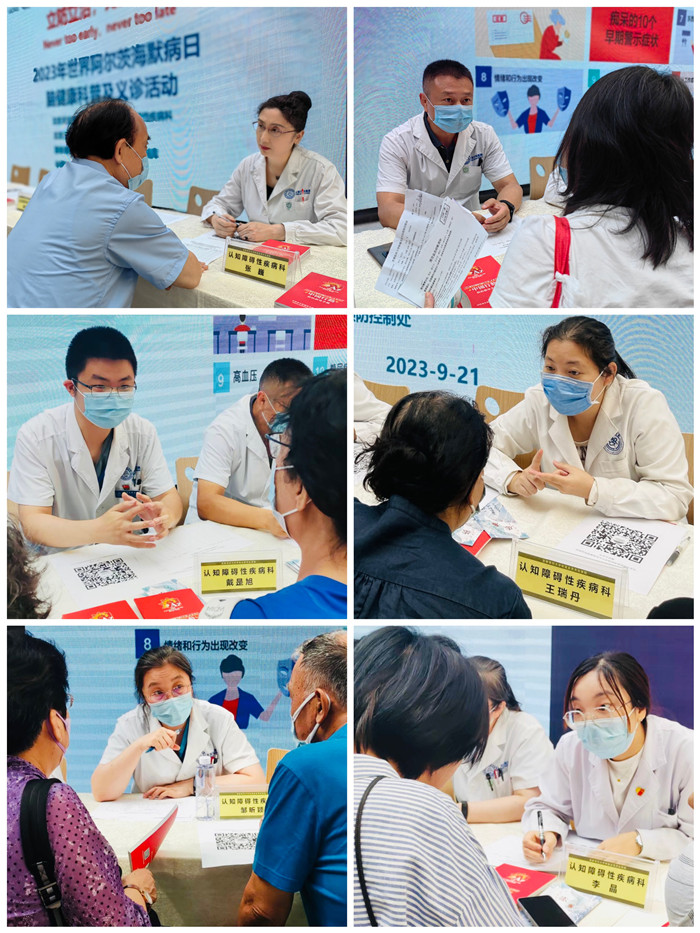 每年的9月是世界阿尔茨海默病月,9月21日是世界阿尔茨海默病日。在今年的9月21日,首都医科大学附属北京天坛医院神经病学中心党总支认知障碍性疾病科党支部、神经病学中心认知障碍科在今天成功举办了2023年世界阿尔茨海默病日脑健康科普及义诊活动。神经病学中心党总支委员、认知障碍性疾病科主任兼党支部书记张巍教授带领北京天坛医院神经病学中心认知障碍性疾病科的医护团队发起本次活动,康复科专家团队(张玉梅教授团队)、中国红十字脑健康志愿服务队(黄越教授团队及赵雪松教授团队)以及北京天坛医院疾病预防控制处共同参加了此次活动。