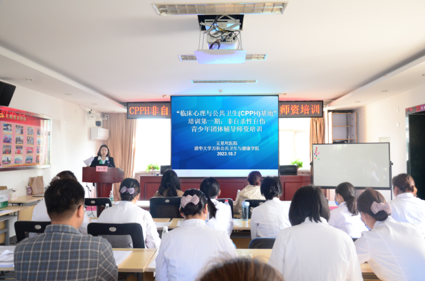 2023年五里坨医院与清华大学卫健学院儿童青少年心理健康实验室联合推动CPPH临床心理与公共卫生基地建设,通过组建多学科背景的师资团队与临床实践基地实现双结合,在不同的人群和环境中开展临床服务,以促进心理健康为目标,最终实现心理预防、治疗和疾病管理的目的。2023年10月,五里坨医院与清华大学卫健学院儿童青少年心理健康实验室共同举办了临床心理与公共卫生(CPPH)系列讲座,以“非自杀性自伤(NSSI)青少年团体辅导”师资培训为主题开展了第一期培训,后续还将持续推进,针对筛查出心理健康障碍的儿童青少年,必要时拟将转介入五里坨医院的儿童青少年心理健康专科门诊进行精神心理治疗。